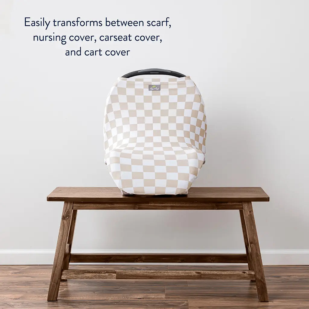 Please make sure to keep the larger hole at the bottom when stretching over the infant car seat, shopping cart or using as a nursing cover. Specially created with 4-way stretch to easily be worn as a scarf, nursing cover, infant car seat cover, or as a shopping cart cover.