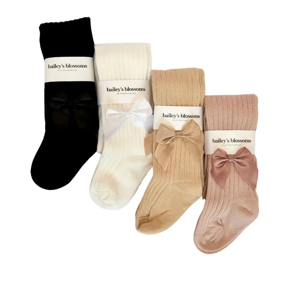 Ribbed Satin Bow Tights