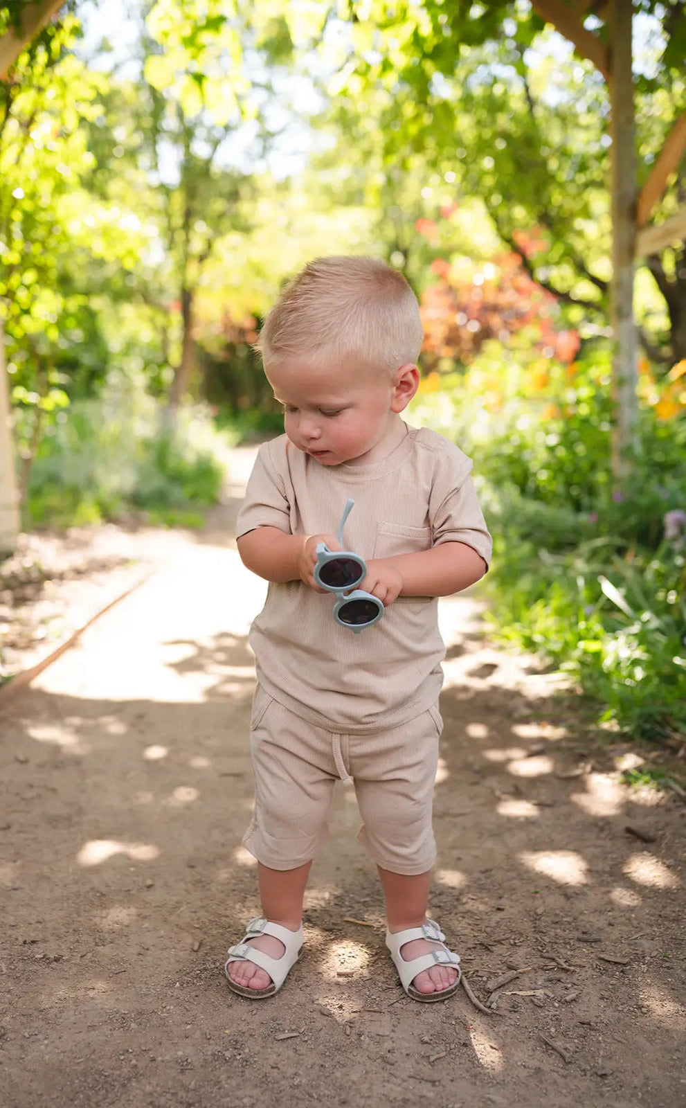 This bamboo tan ribbed short set is soft and lightweight with the perfect amount of stretch. This set features a pocket shirt and shorts with functional pockets and drawstring.
